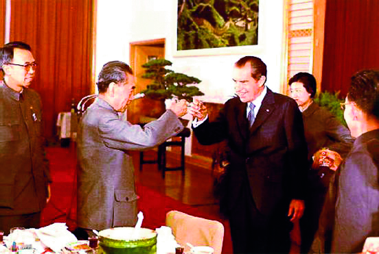 1956年,当时的国务院总理周恩来亲自指示拨款地方国营绍兴酒厂(古越龙山前身),修建了绍兴酒中央储备仓库。作为绍兴人,周恩来对这一家乡特产充满了自豪,由衷喜爱。1959年秋,邓颖超在参观绍兴酒厂时,对陪同的厂领导说:“恩来很喜欢绍兴酒,也喜欢喝一点。”直到晚年,周总理还保持着绍兴酒加温后饮用以及用花生、豆腐干下酒的传统习惯。周总理不但自己喜欢喝绍兴酒,还把它介绍给各位中央领导人和世界各国的贵宾。据北京钓鱼台国宾馆的工作人员说,总理设宴招待外宾时,第一杯酒往往是绍兴酒。北京钓鱼台国宾馆自1959年开馆以来,就一直使用古越龙山绍兴酒作为宴用黄酒;到1988年,国家实行礼宾改革,古越龙山荣登国宴专用酒之位。
