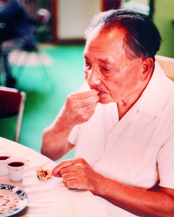 改革开放的总设计师邓小平虽然没有到过绍兴,但他对绍兴酒却情有独钟。1993年9月,他女儿邓榕赴香港参加《我的父亲邓小平》一书首发式,在回答记者提问时讲到,邓小平在他85岁那年遵照医嘱戒了烟以后,每天要喝一杯绍兴酒。1999年2月,摄影家杨绍明在《新民周刊》深情地写道:“小平伯伯年轻时能够喝点儿酒,更喜欢喝茅台酒。年纪大了,医生提出少饮白酒,所以后来就改成喝绍兴酒。他喝的是一种醇正的绍兴酒,我尝过,很正宗的,微甜。喝加饭酒对老年人的确有好处,是一种难得的保健酒。” 1985年9月,邓小平与美国前总统尼克松共进午餐时,席间上了古越龙山绍兴加饭酒,尼克松喝了大为赞叹,说这种酒很好喝。午餐后,邓小平又送给尼克松4瓶精装古越龙山绍兴加饭酒作为礼品。